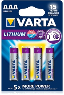 Perfektní řešení pro energeticky náročné přístroje jako jsou digitální fotoaparáty, GPS systémy a detektory kouře. Lithiové baterie také výjimečně dobře pracují v extrémních podmínkách. VARTA Lithiové baterie snáší teplotní rozdíly od –40 °C až do +60 °C. High-tech přístroje jsou napájeny s maximálním výkonem a výdrží. Až o 38 % lehčí než běžná alkalická baterie: perfektní na sport a venkovní použití. Navíc VARTA Lithiová technologie garantuje dobu skladování až po 15 let (kromě 9 V).